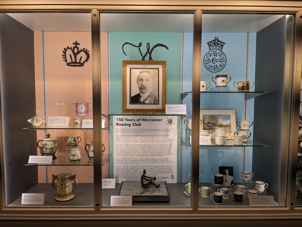The Museum has recently opened a new display in collaboration with Worcester Rowing Club as part of WRC’s 150th anniversary celebrations this year. WRC has a longstanding history with Worcester porcelain, with commemorative ceramics being produced by the Porcelain for the Club since 1874. The objects on display at the Museum are on loan from WRC and its members. This display has been supported by Arts Council England National Lottery Project grants and WRC members.
