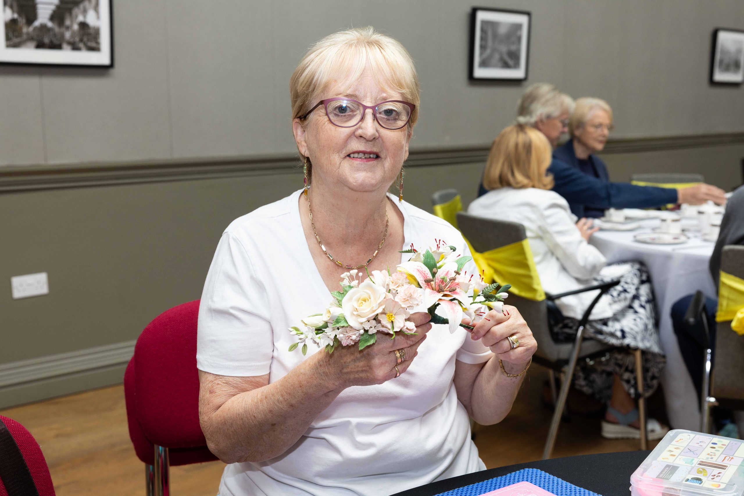 Flower-making demonstration by former Royal Worcester flower-maker Avril Pulley